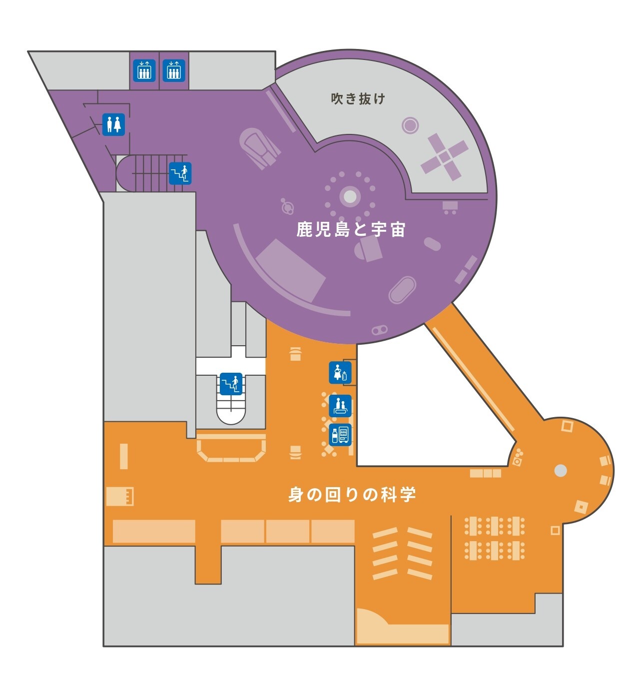 4階には、デジタル技術を活用し、体を動かしながら惑星ごとの重力の違いを楽しめる展示等がある「鹿児島と宇宙」と、光や力などにまつわる自然科学の原理や身近な科学技術に触れられる「身の回りの科学」の2つの展示スペースがあります。